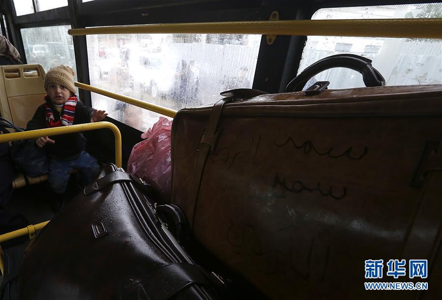 2月28日,在位于黎巴嫩首都贝鲁特的一处集合地点,一名叙利亚难民儿童乘坐大巴,准备离开黎巴嫩。 新华社发 比拉尔 贾维希摄