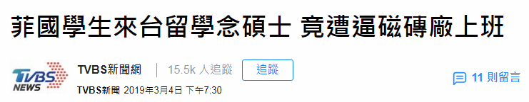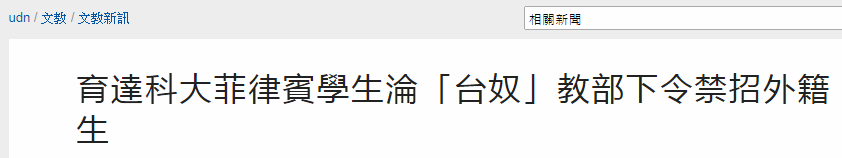事件在岛内传开后引起舆论关注,台湾“联合新闻网”甚至形容称,菲律宾学生沦为“台奴”↓