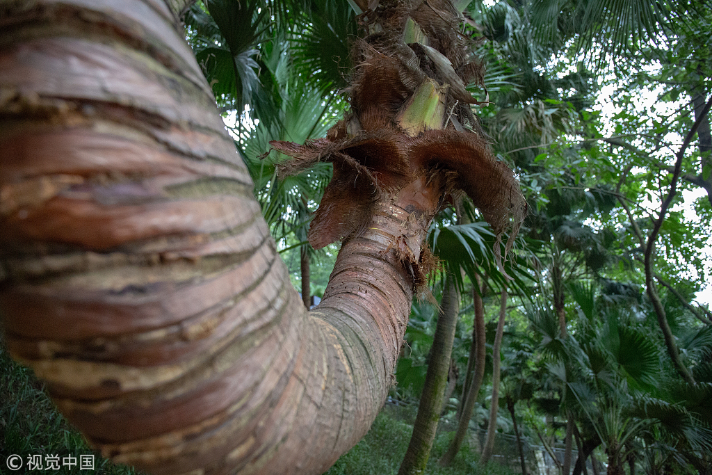 2019年3月4日,重庆渝中区某公园内,一颗360度扭曲生长的棕榈树格外显眼,不少路过市民戏称该树为“树歪歪”。