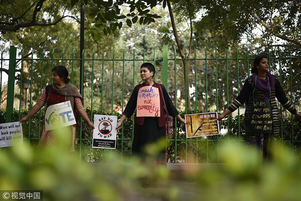 当地时间2019年3月4日,印度新德里,当地举行和平集会,民众希望印度和巴基斯坦政府和平解决克什米尔问题。