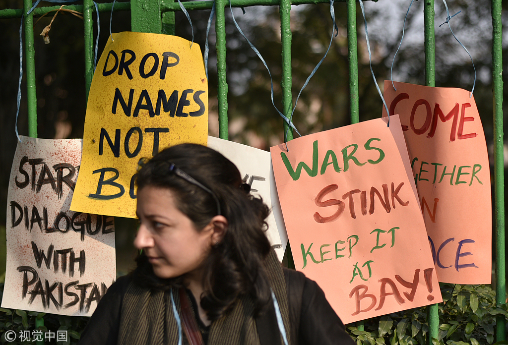 当地时间2019年3月4日,印度新德里,当地举行和平集会,民众希望印度和巴基斯坦政府和平解决克什米尔问题。