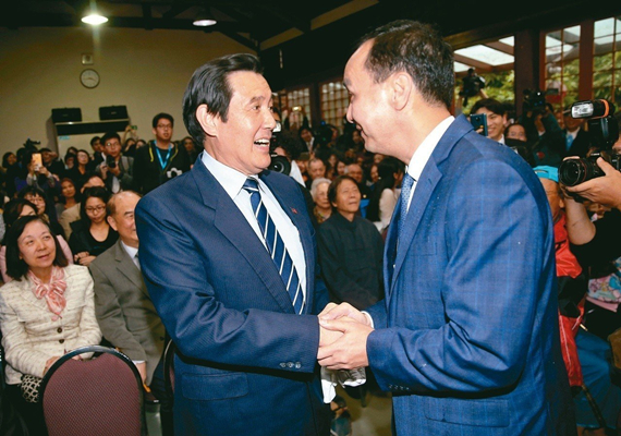 前台湾地区领导人马英九(左)与前新北市长朱立伦(右)日前共同出席画展,马表态支持朱。(图片来源:台湾“联合新闻网”)