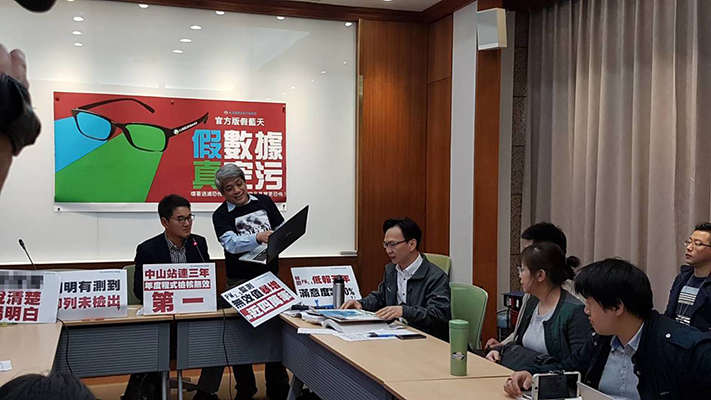 台湾健康空气行动联盟今日指出,台当局“环保署”2018年PM2.5监测数据近四万笔列为无效,比2016年倍增,质疑“环保署”PM2.5监测假数据真空污。(图片来源:台湾《联合报》)