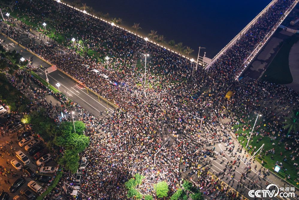 珠海举办建市40周年光影焰火秀 观众挤满街道(图)