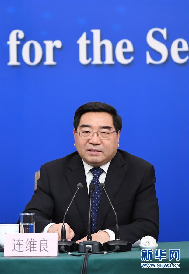 3月6日,十三届全国人大二次会议新闻中心举行记者会,邀请国家发展和改革委员会主任何立峰,副主任宁吉喆、连维良就“大力推动经济高质量发展”相关问题回答中外记者的提问。这是连维良在回答记者提问。 新华社记者 翟健岚 摄