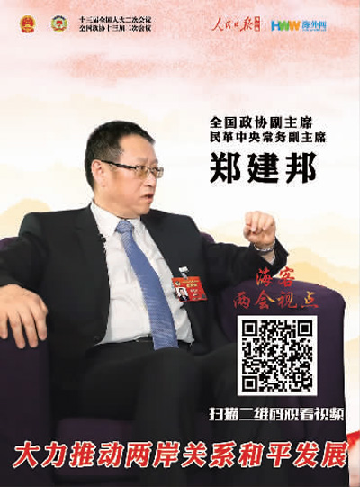 《海客两会视点》是人民日报海外版、海外网推出的2019年全国两会大型融媒体系列访谈节目。3月5日,本报记者就“推动两岸关系和平发展、推进祖国和平统一进程”话题,访问了全国政协副主席、民革中央常务副主席郑建邦。