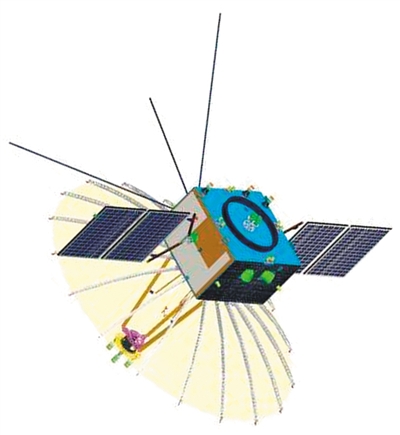 成功实施嫦娥四号任务是中国重大科技创新之一,赢得政府工作报告点赞。图为嫦娥四号在月背探测并通过鹊桥中继星与地面进行数据传输。 (示意图)