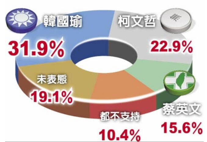 去年此时尚是“台湾最大尾”的柯文哲,在三脚督的情况下,支持度仅落在22%至25%左右徘徊,只拿下第二。若对上韩国瑜,最多会输9个百分点,若对上朱立伦,最少输5个百分点,将与2020擦肩而过。简言之,韩国瑜若参选,柯文哲是“梦碎”,也会斩断蔡英文的连任之路。