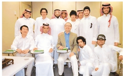 北京语言大学教师曾到沙特国王大学给该校中文专业学生讲授茶艺。图为教师与学生们合影。 (新华网)