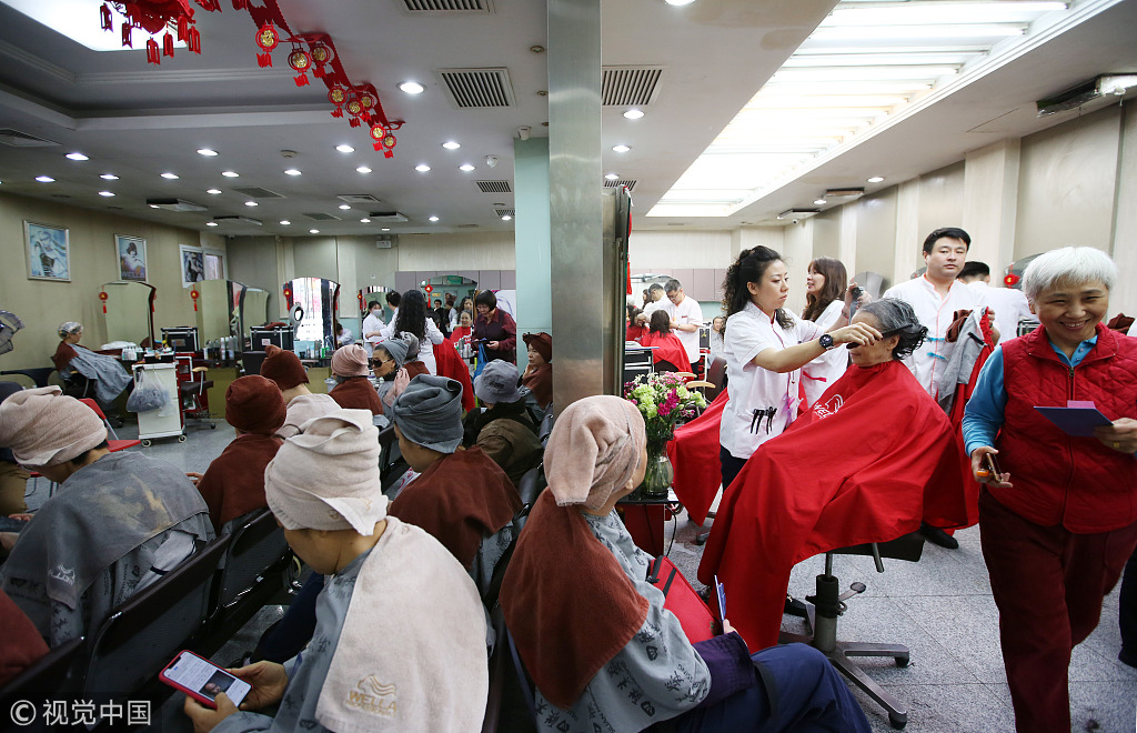 2019年3月8日,“二月二,龙抬头”,北京老字号四联理发店里,市民排队“剃龙头”。二月二恰逢“三八妇女节”,女顾客也多了起来。