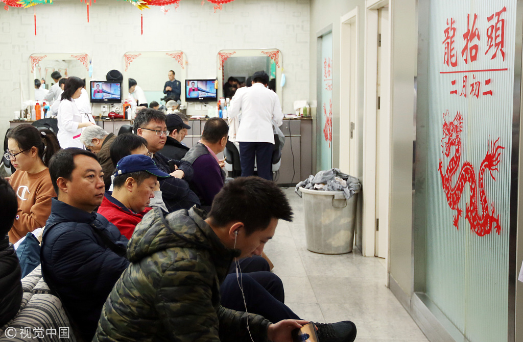 2019年3月8日,“二月二,龙抬头”,北京老字号四联理发店里,市民排队“剃龙头”。二月二恰逢“三八妇女节”,女顾客也多了起来。
