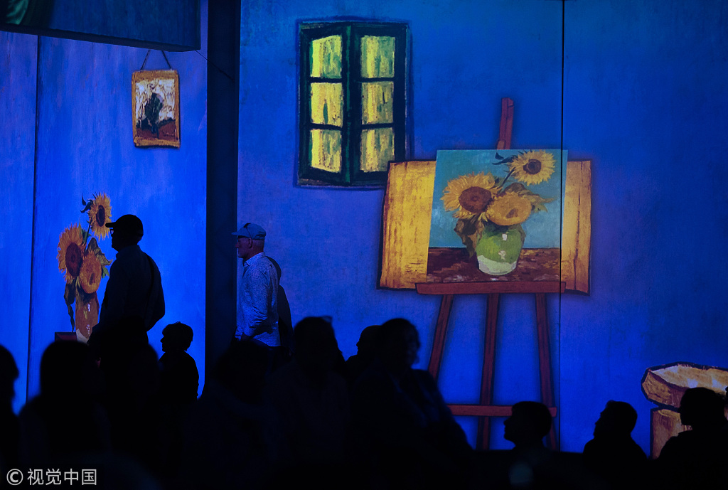 西班牙举办多媒体梵高展 民众置身“油画”中