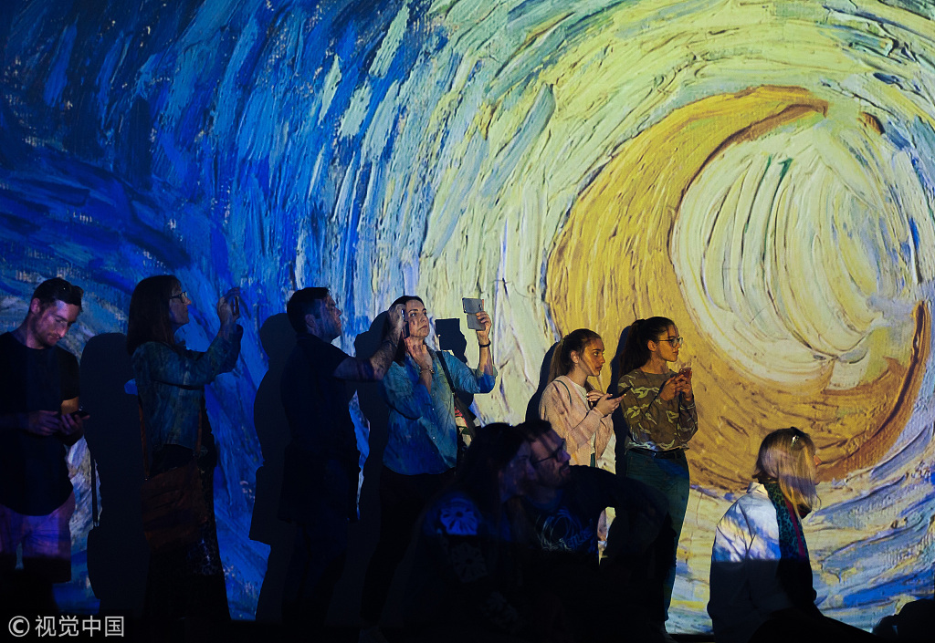 当地时间2019年3月9日,西班牙马拉加,当地举办“活着的梵高”多媒体展览,用多媒体方式展示多幅梵高名作。