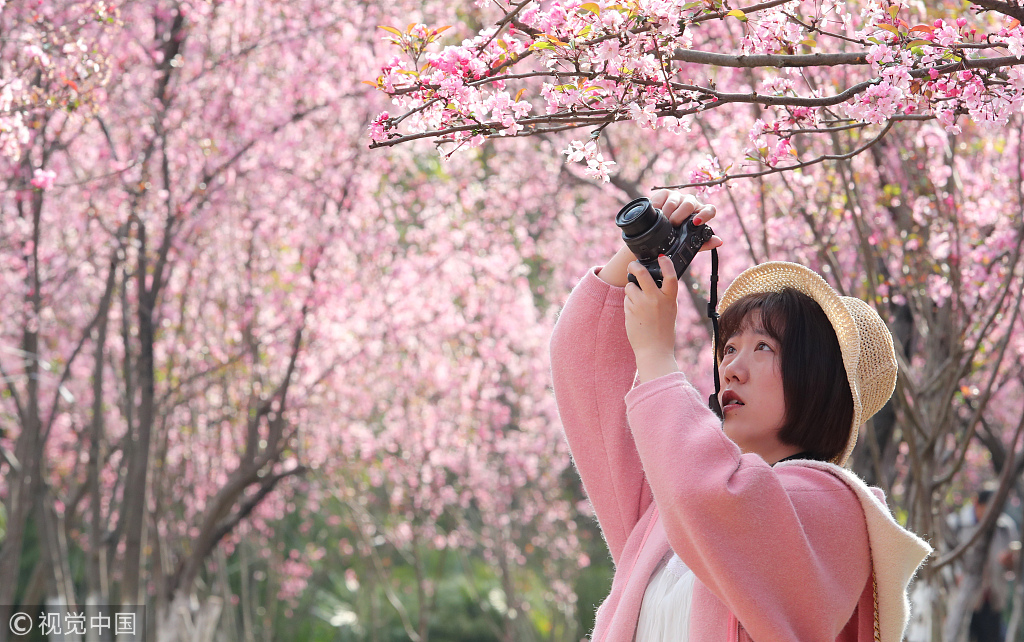 2019年3月9日,昆明,圆通动物园海棠怒放、樱花争艳,烂漫无比的粉色花海让前来赏花踏青的市民游人陶醉在“圆通樱潮"盛景中,花海人潮的赏花季也迎来高峰期。