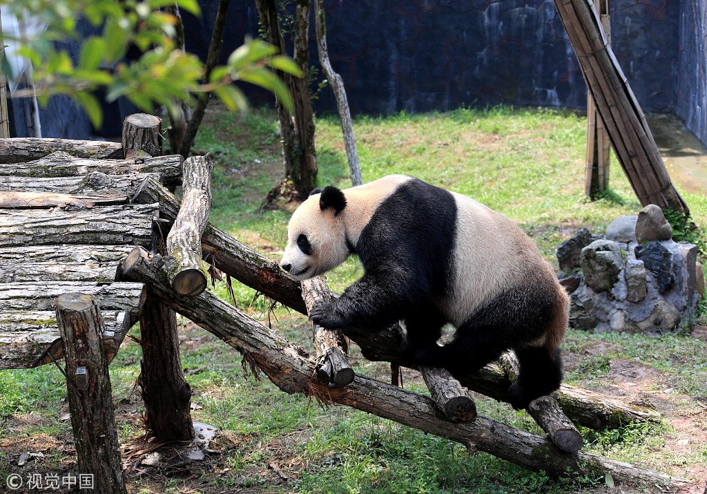 大熊猫乐享春日暖阳憨态可掬
