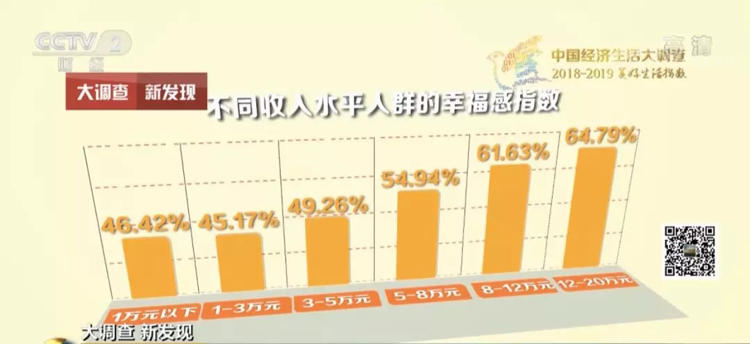 大调查发现,从全国来看,在不同收入群体中,个人年收入12-20万的受访者感觉幸福的比例是最高的(64.79%)。