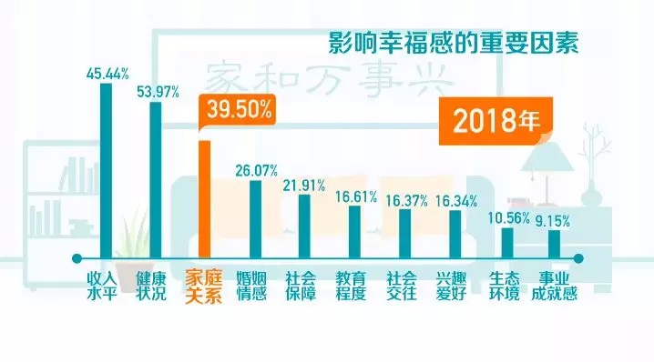 家和万事兴,近两年,家庭关系对于幸福感的影响一直排在前三位。