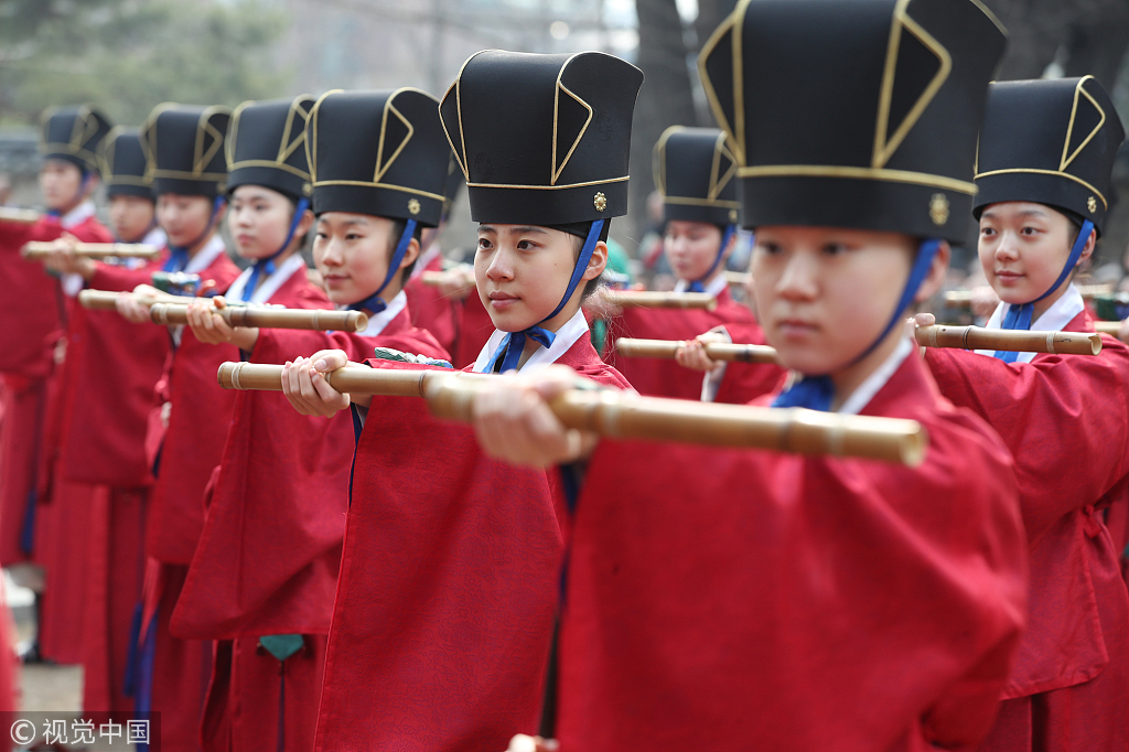 当地时间2019年3月11日,韩国首尔,成均馆大成殿举行春季祭典,纪念包括孔子在内的儒教圣人和先贤。
