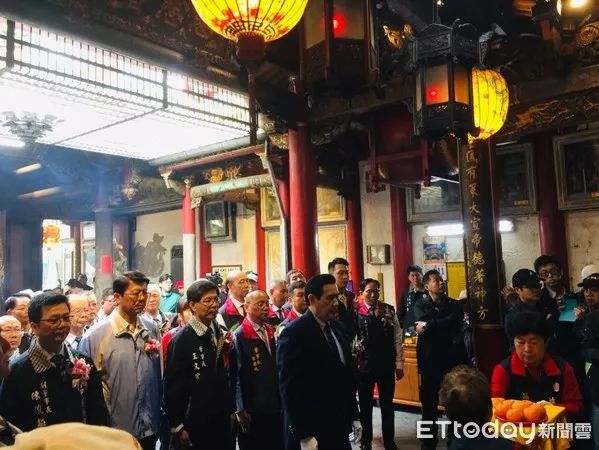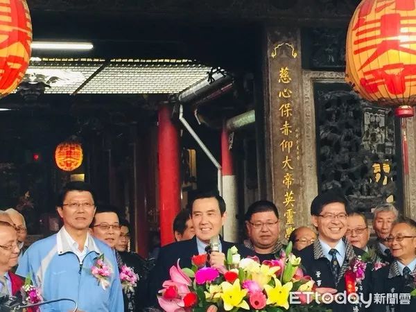 马英九此次是在国民党台南市议员谢龙介等人的陪同下来到慈济宫上香,与上千名信众一起祝贺这场“分灵”活动。