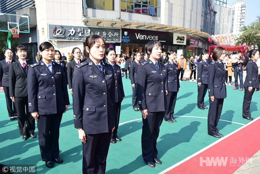 2019年3月12日,在湖南省郴州市苏仙区,妇女职工进行诗朗诵快闪表演。