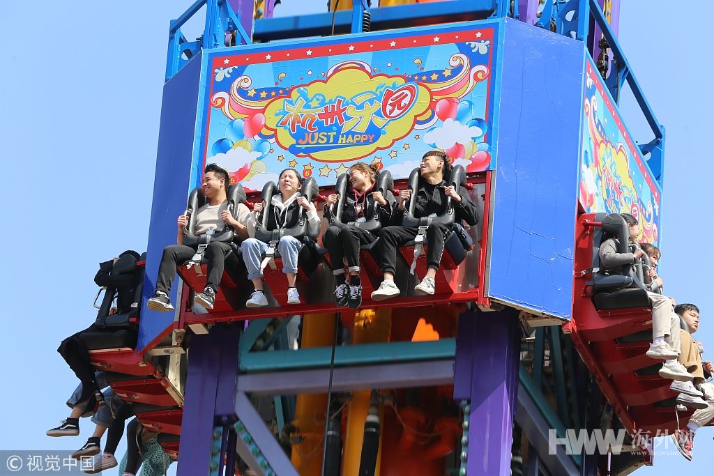2019年3月12日,杭州乐园春季“百米高空挑战大赛”拉开帷幕,参加活动的挑战者参加高空挑战活动。