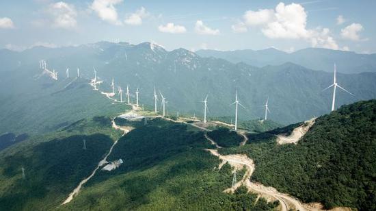 安徽省岳西县牛草山风力发电场(新华社)