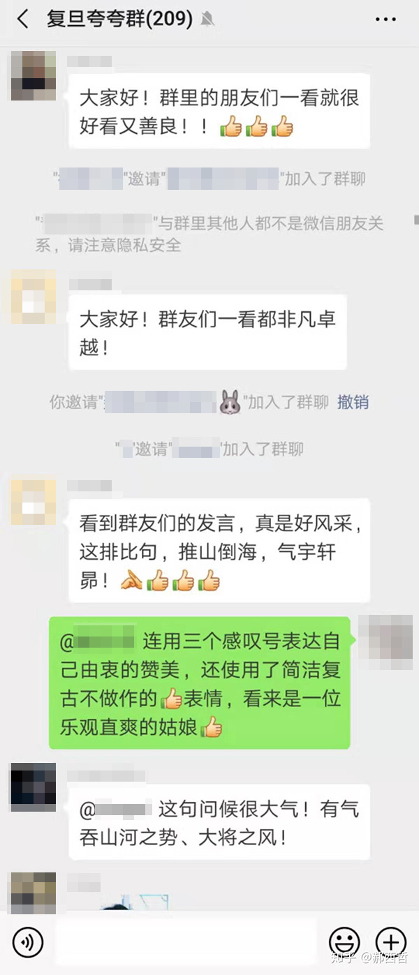 复旦大学2015级信息学院的郝西哲称,其是复旦第一个“夸夸群”里的第9位成员,在他眼中,夸夸群“是快乐的源泉”。