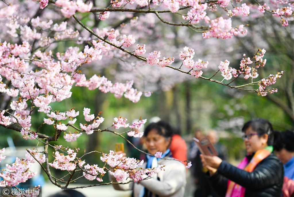 2019年3月13日,南京,中山植物园内的20余株“樱花大道”已悄然绽放,洁白的花瓣、微红的花蕊,美丽中传递着春的信息。据中山植物园工作人员介绍,目前最先开放的是椿寒樱,属于早樱,植物园内有近百棵樱花树,从早樱到晚樱都有,赏花时间可达一个半月。
