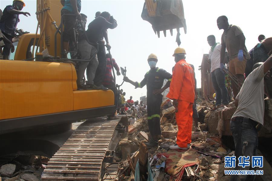 3月13日,在尼日利亚拉各斯,救援人员在楼房坍塌现场展开救援。尼日利亚经济中心拉各斯13日发生一起楼房坍塌事故,造成至少9人死亡、数十人受伤,目前仍有数十人被困。 新华社发(阿德瓦利·阿姆扎特摄)