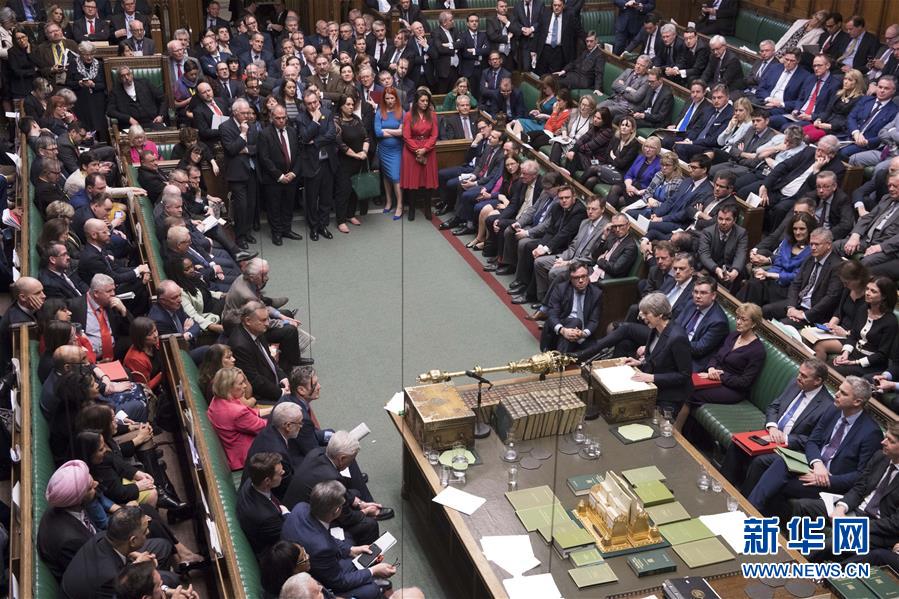 3月13日,在英国伦敦,英国首相特雷莎·梅在议会下院发表讲话。英国议会下院13日投票决定,反对英国在任何情况下“无协议脱欧”。 新华社发(英国议会摄影师杰西卡·泰勒摄)