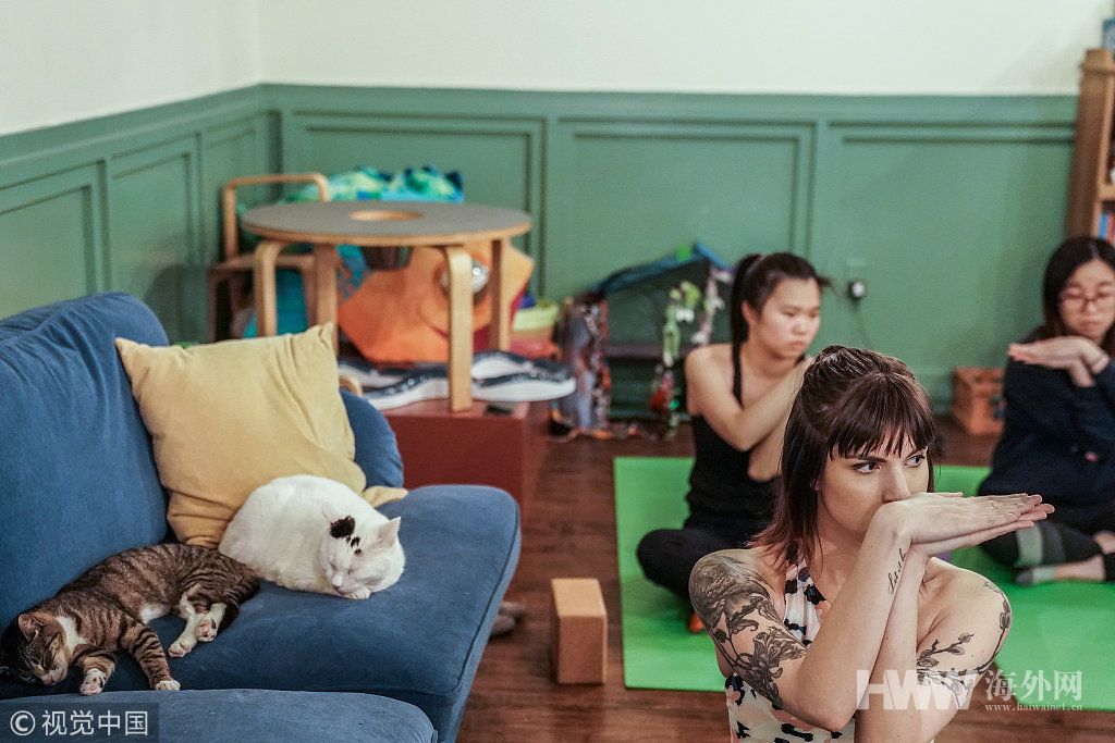 纽约一家猫咖开办瑜伽课 猫咪成“陪练”