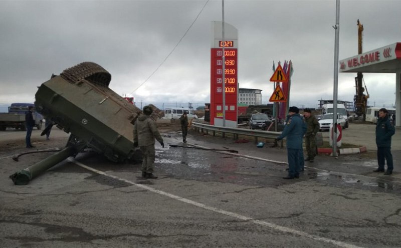 ​日前,在俄罗斯印古什,一辆正在运输的2S7自行火炮翻车。这是俄罗斯近日发生的军用武器的第三次倾翻。