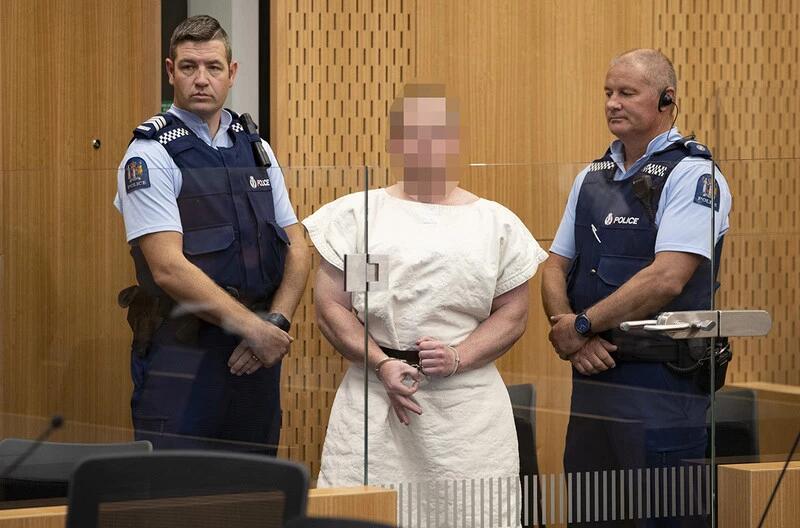 当天,这名嫌疑人戴着手铐,赤着脚,身穿白色囚服,在严密的安保伴随下出现在克赖斯特彻奇地区法院。