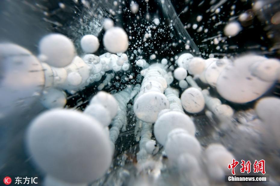 快去俄罗斯贝尔加湖赴一场蓝冰之旅!29岁摄影师Vadim Makhorov上个月前往贝尔加湖,操纵一架无人机飞掠世界上最大的淡水湖上空,捕捉了凛冬天气里美到令人窒息的冰冻湖面:纵横交错的冰裂、无数渴望冒出地面的气泡冰、透过湖面,仿佛一个近在咫尺的地下“银河”。图片来源:东方IC 版权作品 请勿转载