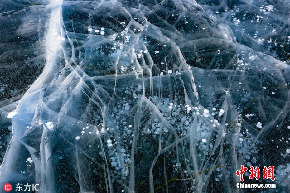 快去俄罗斯贝尔加湖赴一场蓝冰之旅!29岁摄影师Vadim Makhorov上个月前往贝尔加湖,操纵一架无人机飞掠世界上最大的淡水湖上空,捕捉了凛冬天气里美到令人窒息的冰冻湖面:纵横交错的冰裂、无数渴望冒出地面的气泡冰、透过湖面,仿佛一个近在咫尺的地下“银河”。图片来源:东方IC 版权作品 请勿转载
