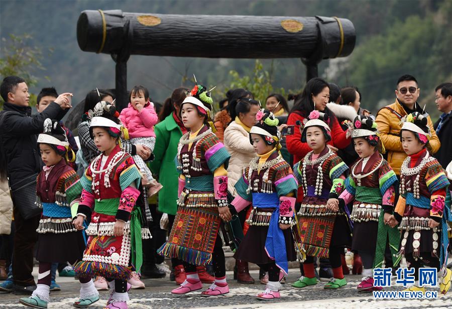 3月16日,在丹寨县南皋乡清江村,身着节日盛装的苗族姑娘在跳木鼓舞。 当日,贵州省黔东南苗族侗族自治州丹寨县南皋乡清江村清江村举行翻鼓节。翻鼓节是当地苗族村民迎接春耕到来的民俗节日,至今已有近600年历史,每年农历二月举行。 新华社记者 杨文斌 摄