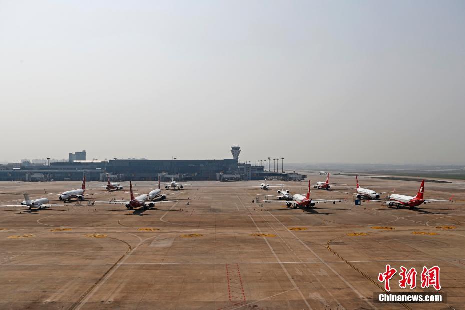 3月17日,上海航空公司的9架波音737MAX机型飞机停在虹桥国际机场停机坪上。据路透社报道,波音公司计划将在未来一周到10天内发布波音737MAX机型相关升级软件。目前,波音737MAX机型已经在全球停飞。中新社记者 殷立勤 摄