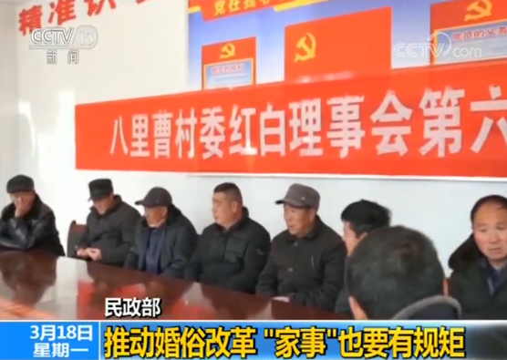 民政部表示,将利用农村基层组织和红白理事会,倡导和组织举办集体婚礼、纪念婚礼、慈善婚礼等文明节俭的婚礼形式,并将婚礼流程、彩礼数额等通过村民公约的形式来固定下来;