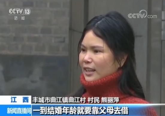 江西省丰城市曲江镇曲江村村民 熊丽萍:年轻人在外面工作积蓄也不多,到结婚年龄就要靠父母去借。