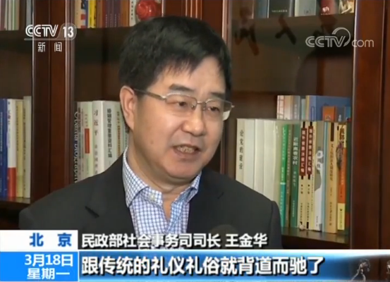 民政部社会事务司司长 王金华:彩礼在农村地区有一定的普遍性、合理性,但是彩礼如果超出一定的范围,应该说就走向反面了,就成为一种陈规陋习,跟传统的礼仪礼俗就背道而驰了。所以天价彩礼是必须要反对的,因为天价彩礼使很多农村青年娶不起媳妇,嫁不起人。