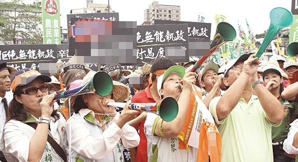 2010年时,民进党发动“反ECFA游行”。(图片来源:台湾《联合报》)