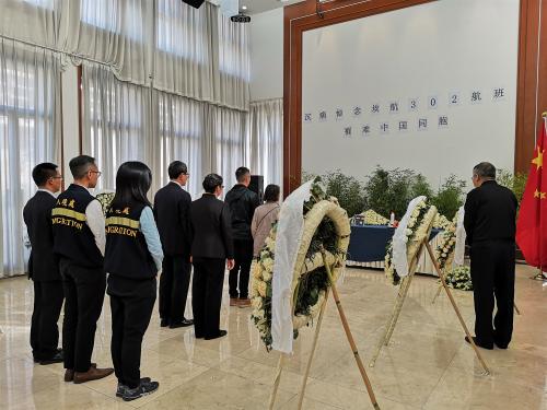 驻埃塞俄比亚使馆举行埃塞航空ET302航班失事罹难中国同胞悼念活动。图片来源:中国驻埃塞俄比亚大使馆网站