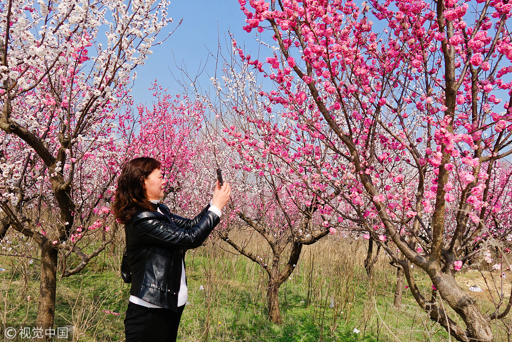 安徽宿州:梅花、杏花争芳吐艳 游人仿佛置身梦幻世界