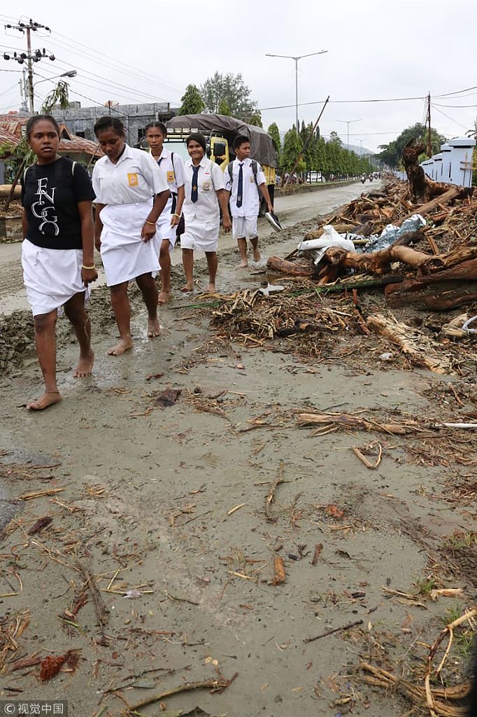 当地时间2019年3月19日,印尼查亚普拉,印尼东部巴布亚省发生洪涝灾害和山体塌方,已造成至少89人死亡。
