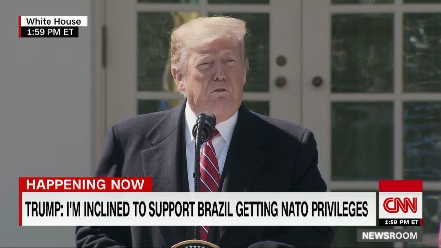 在会谈中,特朗普还表示打算将巴西纳入北约盟国。他说道,“正如我告诉博索纳罗总统的那样,我还打算将巴西指定为主要非北约盟友,或者是北约盟友。我可能需要和很多人谈这件事,但(巴西)也许可以成为北约盟友”。当天早时,特朗普曾表示,“我们在很认真地考虑这件事(让巴西成为北约盟友)。我们非常想这样做。我们与巴西的关系从没有像现在这样好。”报道称,巴西方面也希望特朗普政府将自己提升为“主要非北约盟国”,这将有助于巴西购买军事装备。