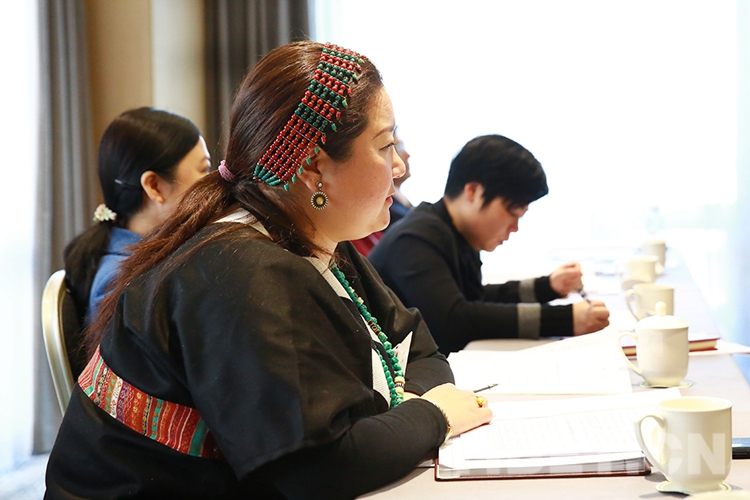 图为贡觉曲珍参加全国政协十三届二次会议民族界别小组讨论会。摄影:陈卫国