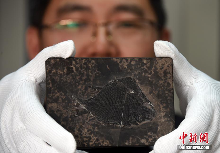 3月,中国科学院古脊椎动物与古人类研究所研究员徐光辉展示介绍他采集发现的格兰德拱鱼化石。徐光辉研究团队在云南罗平发现2.44亿年前一种新的铰齿鱼类化石,这项最新发现也是世界上迄今发现最早的铰齿鱼类化石记录之一。徐光辉研究团队将新发现的铰齿鱼类命名为优美玉带鱼,并将其归入拱鱼目腊山鱼科,相关研究成果最近已获中国核心学术期刊《古脊椎动物学报》在线发表。中新社记者 孙自法 摄