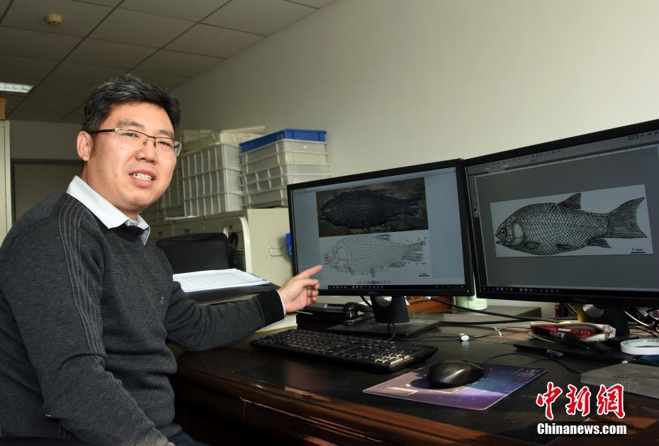 3月,中国科学院古脊椎动物与古人类研究所研究员徐光辉介绍优美玉带鱼化石正型样本、手绘素描及复原图。徐光辉研究团队在云南罗平发现2.44亿年前一种新的铰齿鱼类化石,这项最新发现也是世界上迄今发现最早的铰齿鱼类化石记录之一。徐光辉研究团队将新发现的铰齿鱼类命名为优美玉带鱼,并将其归入拱鱼目腊山鱼科,相关研究成果最近已获中国核心学术期刊《古脊椎动物学报》在线发表。中新社记者 孙自法 摄