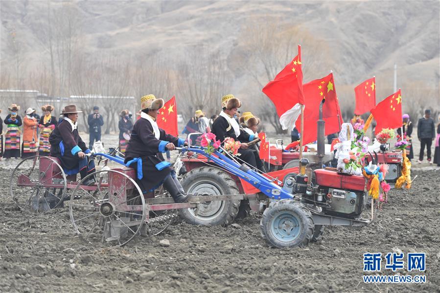 克松社区村民在参加春耕仪式(3月16日摄)。 1959年,克松是西藏第一个进行民主改革的村子,因此被称为西藏民主改革第一村。 2018年克松社区人均可支配收入达到19735元。 新华社记者 晋美多吉 摄