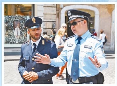 中意警察在罗马街头联合巡逻。 本报记者 韩秉宸摄